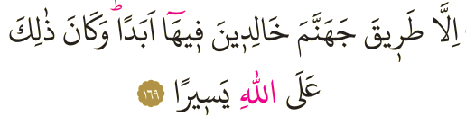 Meali: 169- Ancak orada ebedî kalmak üzere cehennem onları yoluna (iletecektir). Bu da Allah'a çok kolaydır.