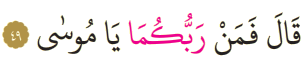 Meali: 49- Firavun: Rabbiniz de kimmiş, ey Musa? dedi.