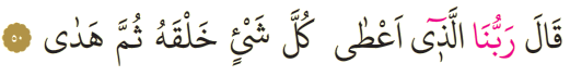 Meali: 50- O da: Bizim Rabbimiz, her şeye hılkatini (varlık ve özelliğini) veren, sonra da doğru yolu gösterendir, dedi.