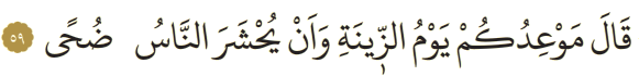 Meali: 59- Musa: Buluşma zamanınız, bayram günü, kuşluk vaktinde insanların toplanma zamanı olsun, dedi.