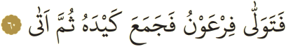 Meali: 60- Bunun üzerine Firavun dönüp gitti. Hilesini (sihirbazlarını) topladı; sonra geri geldi.