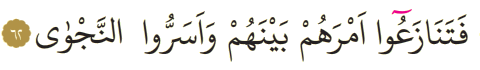 Meali: 62- Bunun üzerine onlar, durumlarını aralarında tartıştılar; gizli gizli fısıldaştılar.