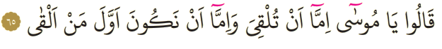 Meali: 65- Dediler ki: Ey Musa! Ya sen at veya önce atan biz olalım.